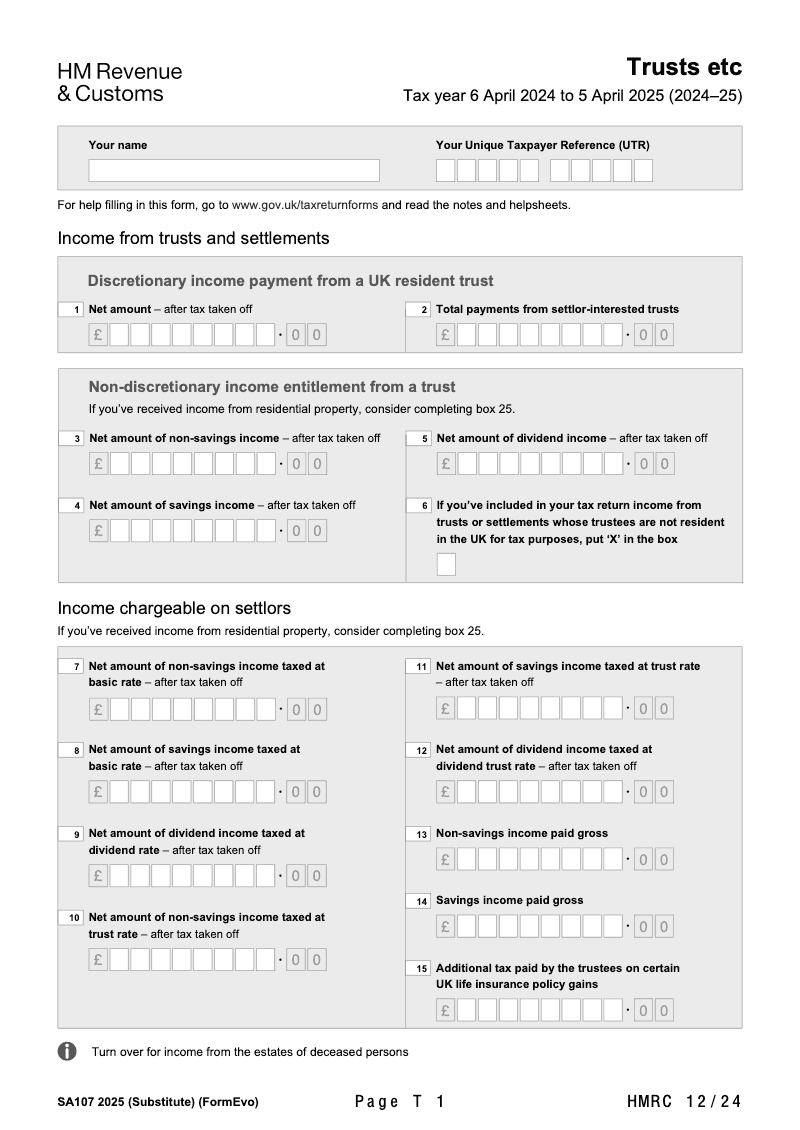 Trusts etc for year ended 5 April 2025 (2024-25)