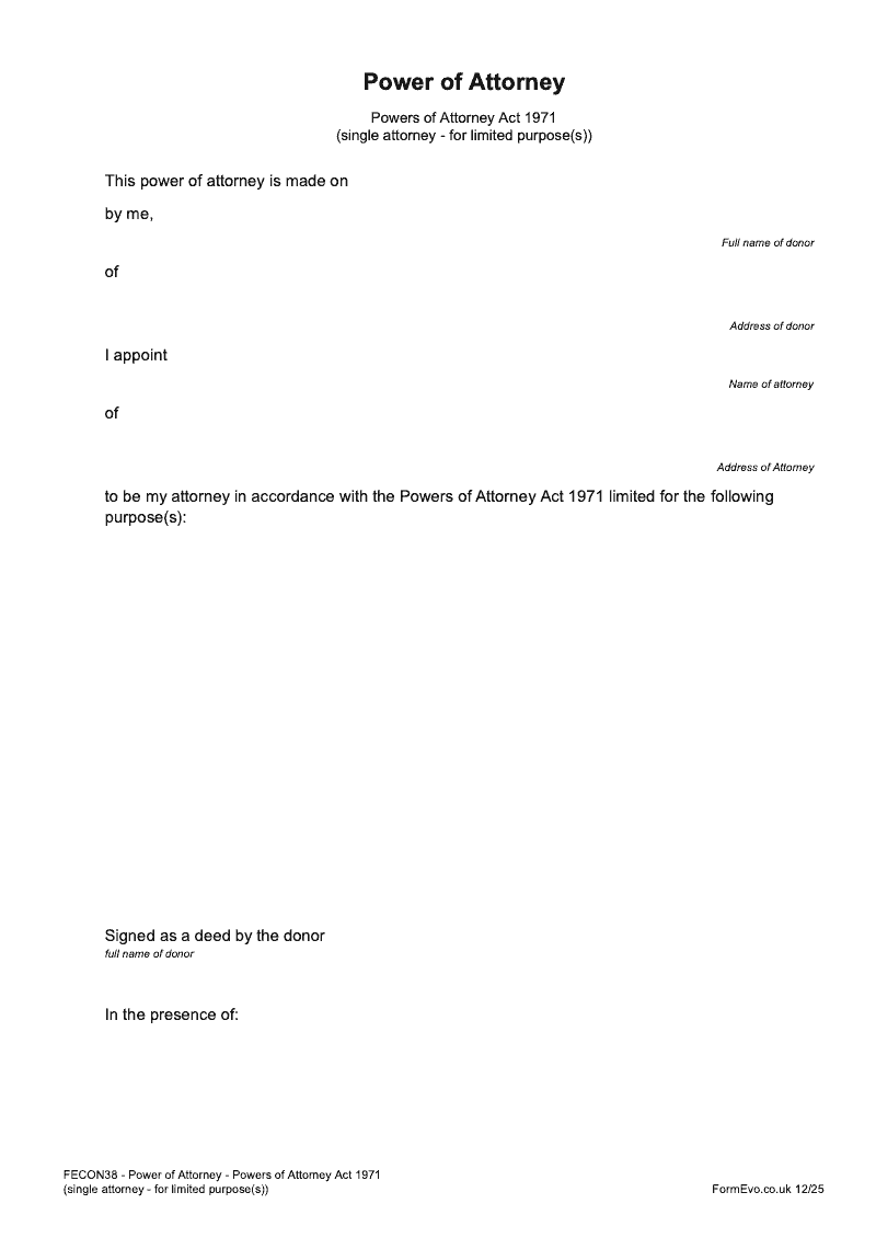 Power of Attorney (single attorney - for limited purpose(s)) [POA4]